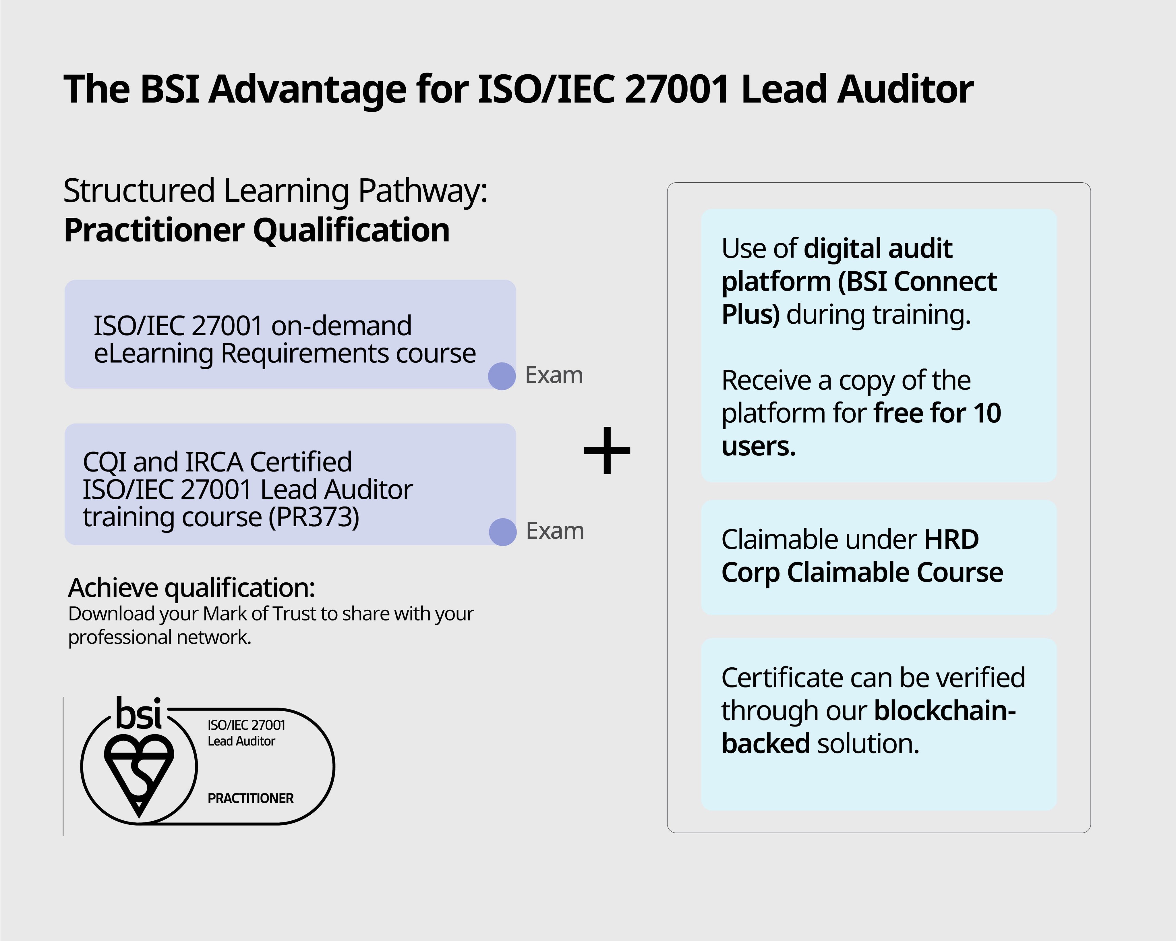 - Plus, you will be awarded the qualification - BSI Mark of Trust badge upon passing both courses examination.